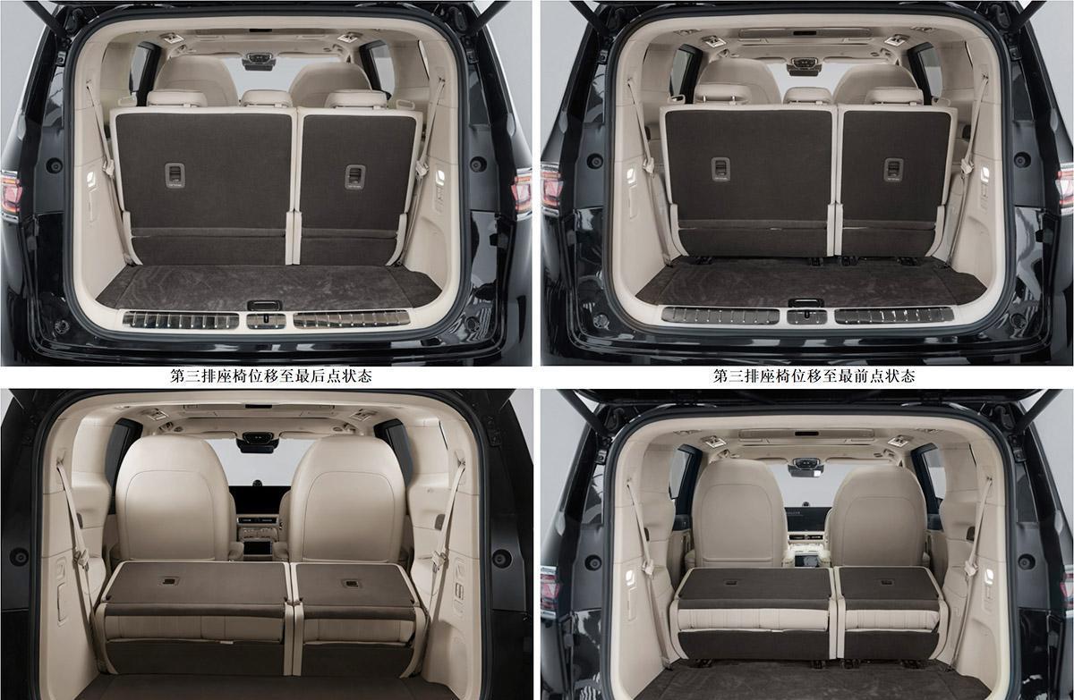 此次申报的车型采用的是2+2+3式的7座布局,第三排座椅靠背能够4/6比例折叠,采用的是向前折叠的方式。