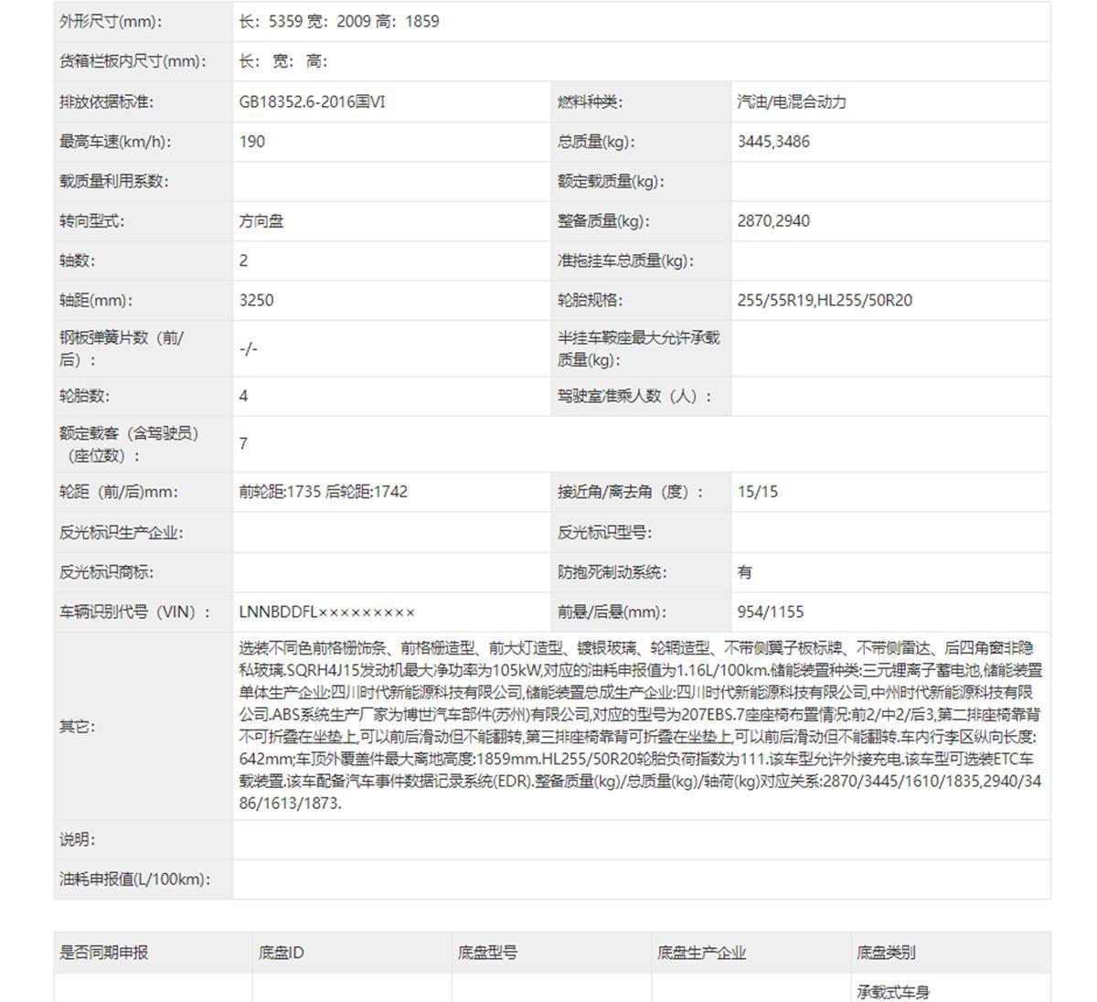 动力配置方面,此次申报的智界V9搭载的是由1.5T增程发动机和电机组成的增程式插电混动动力系统,其中增程器的最大功率为115千瓦,匹配的是三元里离子电池组。